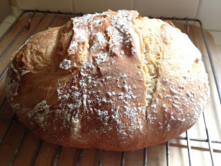 Rather than reinvent the wheel, here's the King Arthur Flour recipe. The blog is full of tips and variations. My blog chronicles my various attempts - all good - the longer rests yielding tastier loaves. The link is for the larger recipe. For 1 loaf, see below. The ingredients and general preparation are very simple. Best results come from the nuances you'll pick up each time you make it. The recipe that follows is 1/2 the KAF recipe.